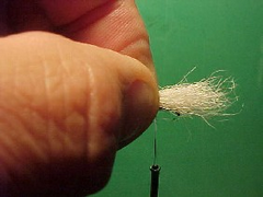 - Do a loose fly tiers pinches and then slowly pull it tightly closed locking the hairs into position.