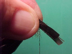 - Cut the sips away from the hackle as shown above being careful to keep them right way up.