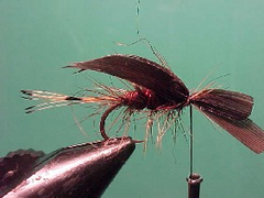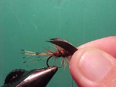 - Just a little manipulation with your fingers will be enough to spread the wings into their finished position which is laying back over the bend of the hook at an angle of around 30 degrees with the tips separated about the same distance as the gape of the hook.