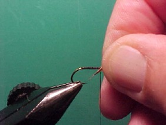 2. Carefully place them over the tie in thread with one slip on each side of the hook shank.
