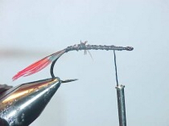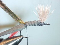 - Wind the herl rope over the body in touching turns stopping just short of the wings.